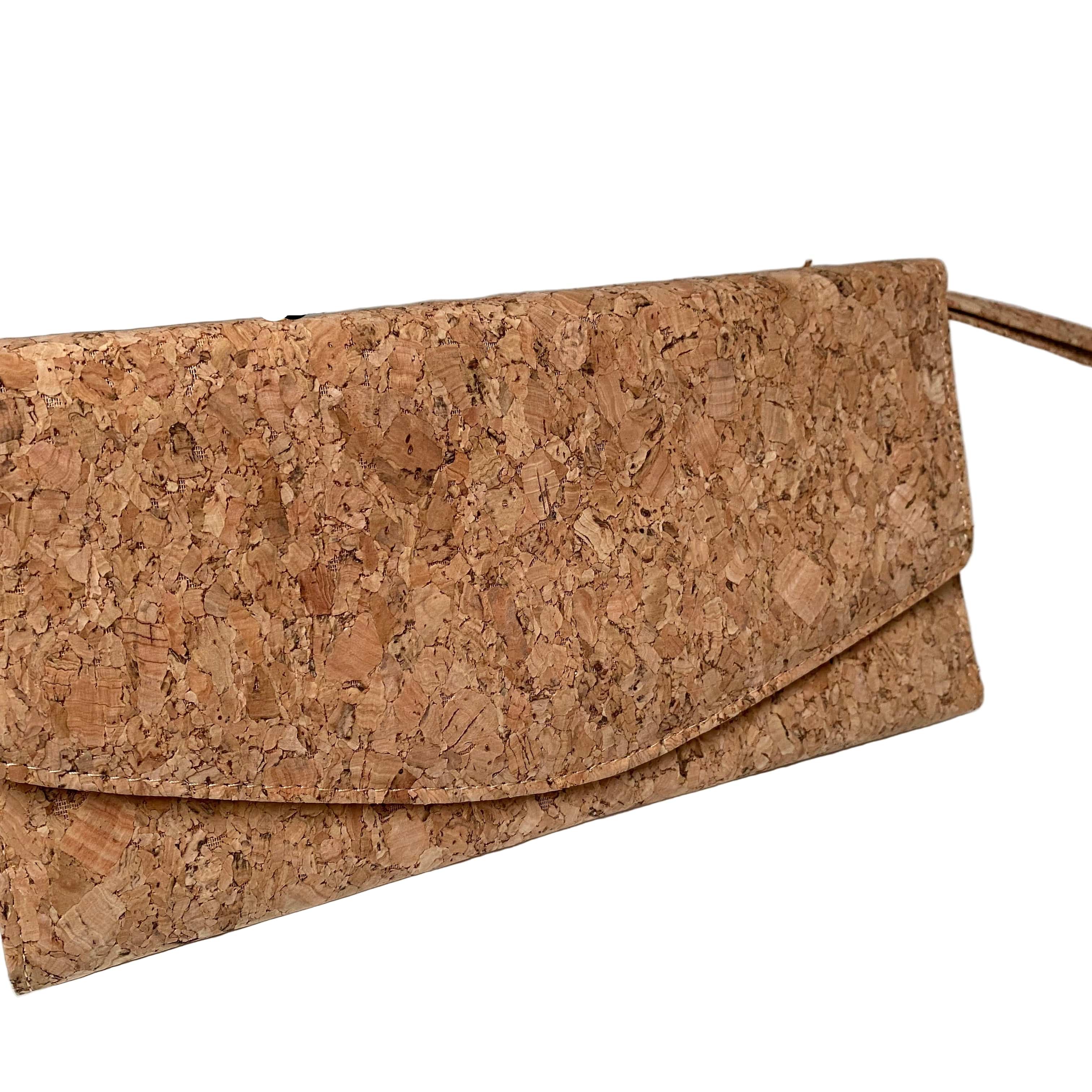 Expertly constructed with durable, water-resistant cork material, the 'Emma' long wallet features a tri-fold design for effortless organization and a clear display of your cards. Plus, the retractable wrist strap, located on the interior, can be conveniently tucked away or used when you're on-the-go.