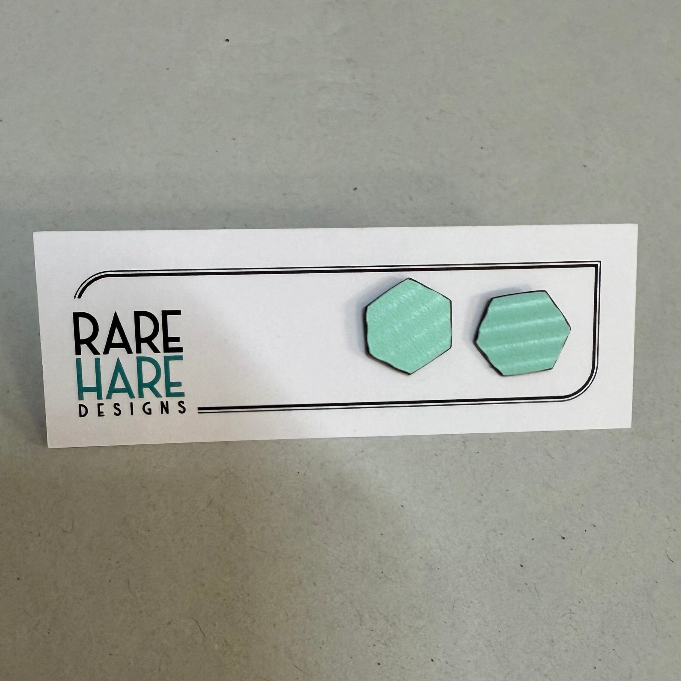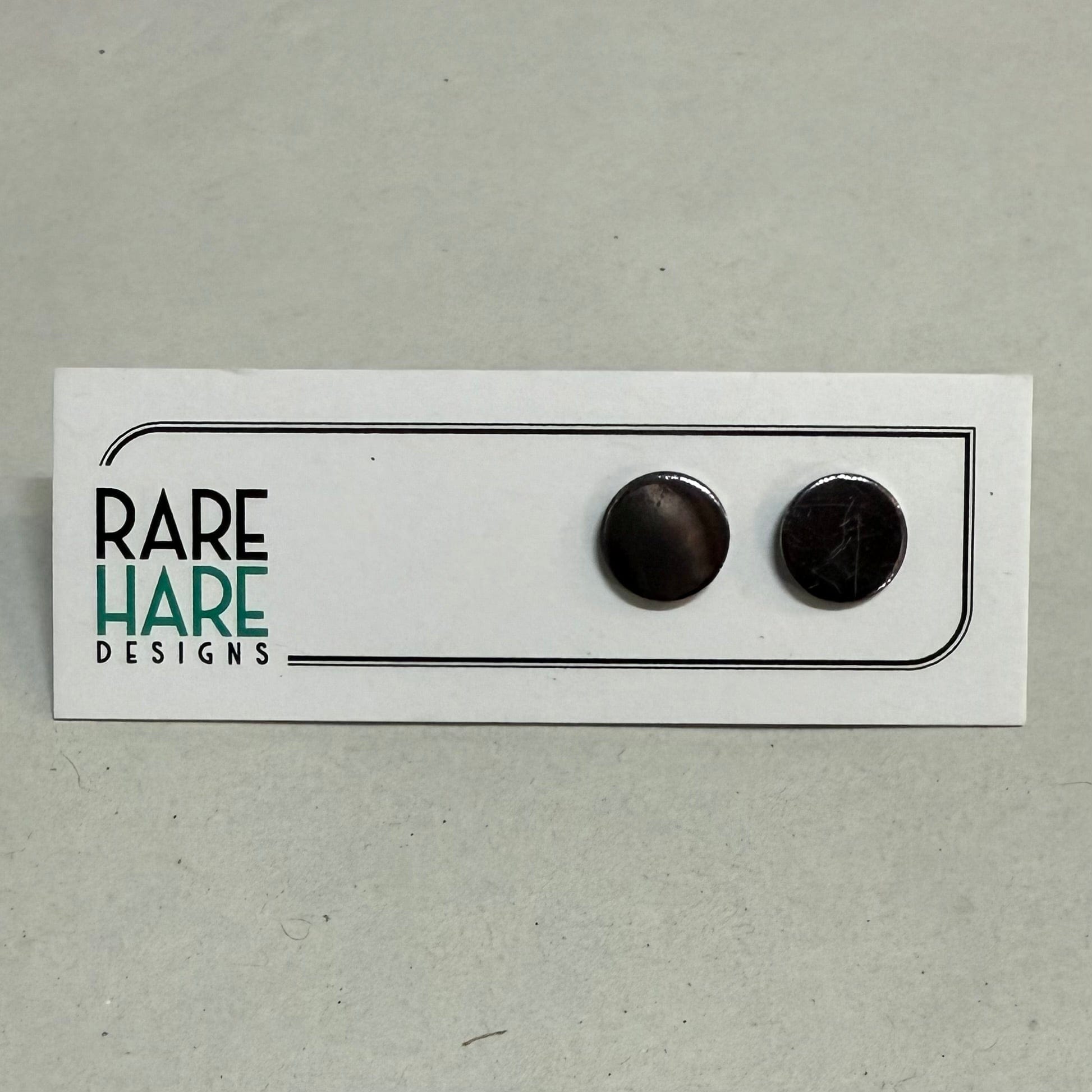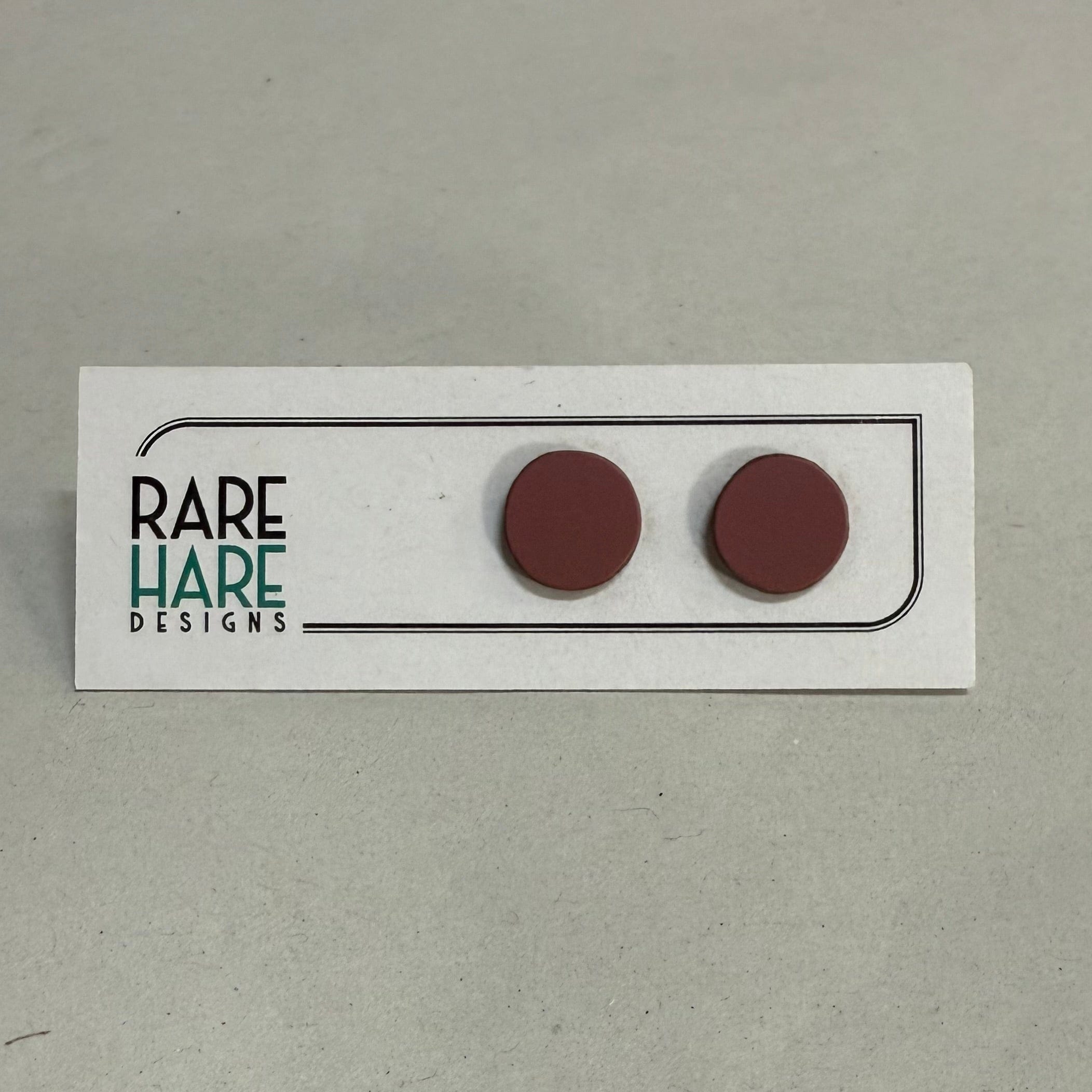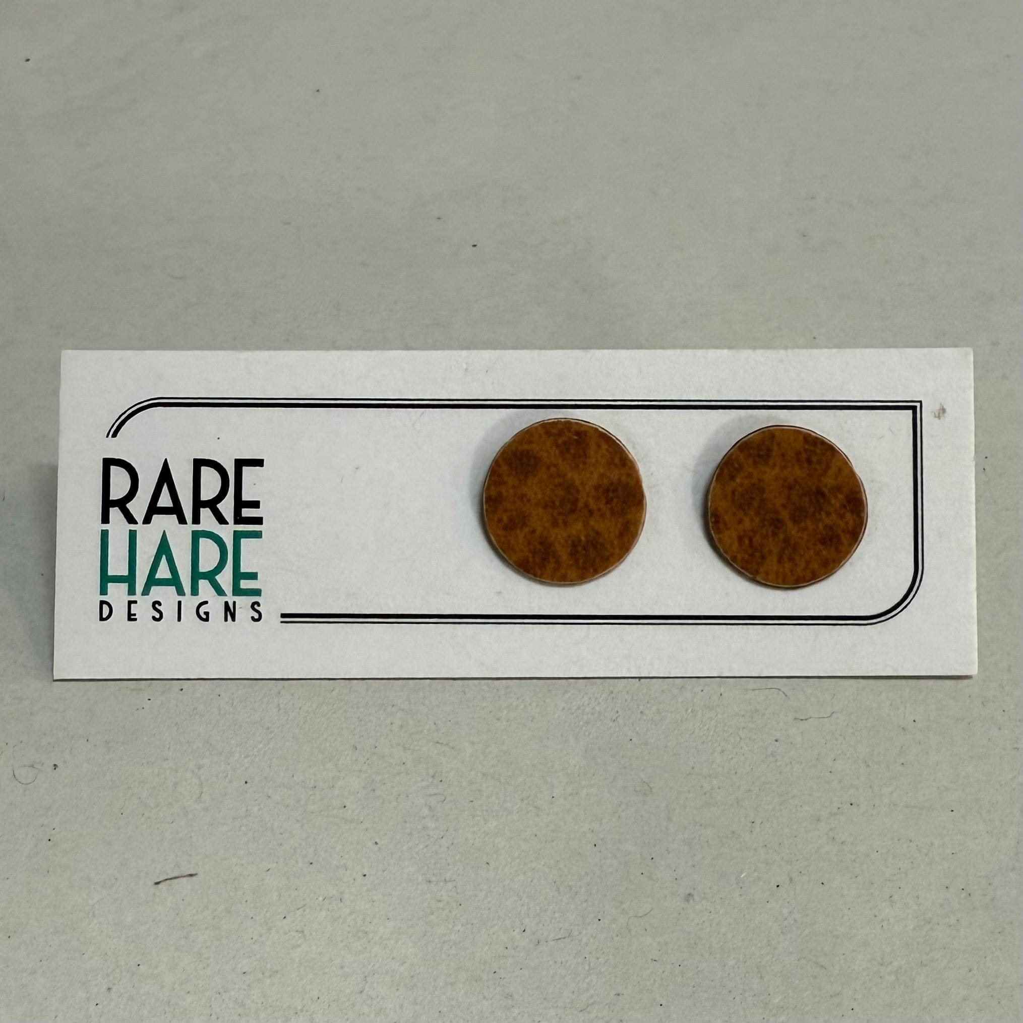 These earrings feature Upcycled laminate and flooring, handmade by Rare Hare Designs from the remaining material. Each circle is meticulously cut using a hand saw and attached to a surgical steel post with butterfly back.