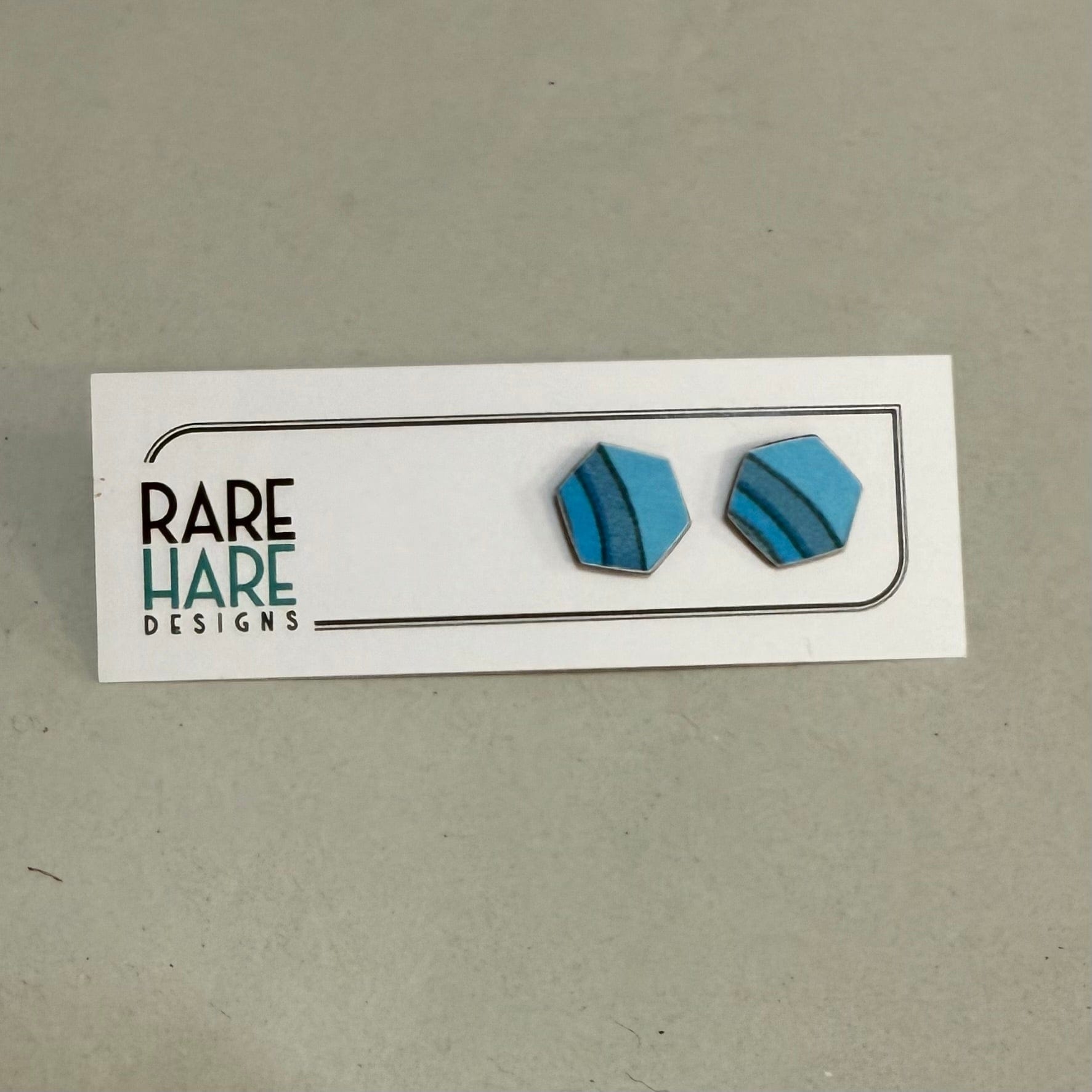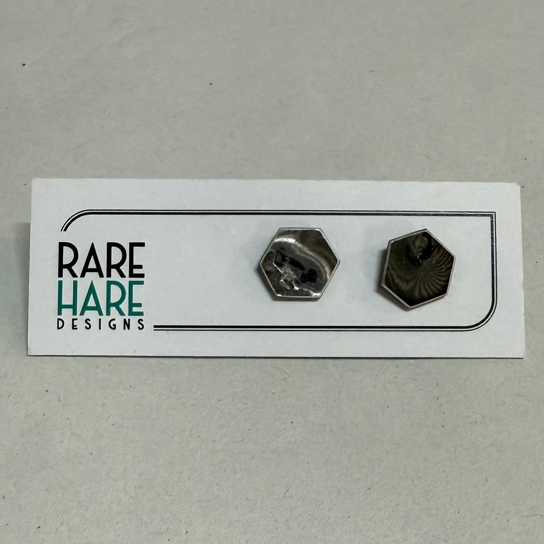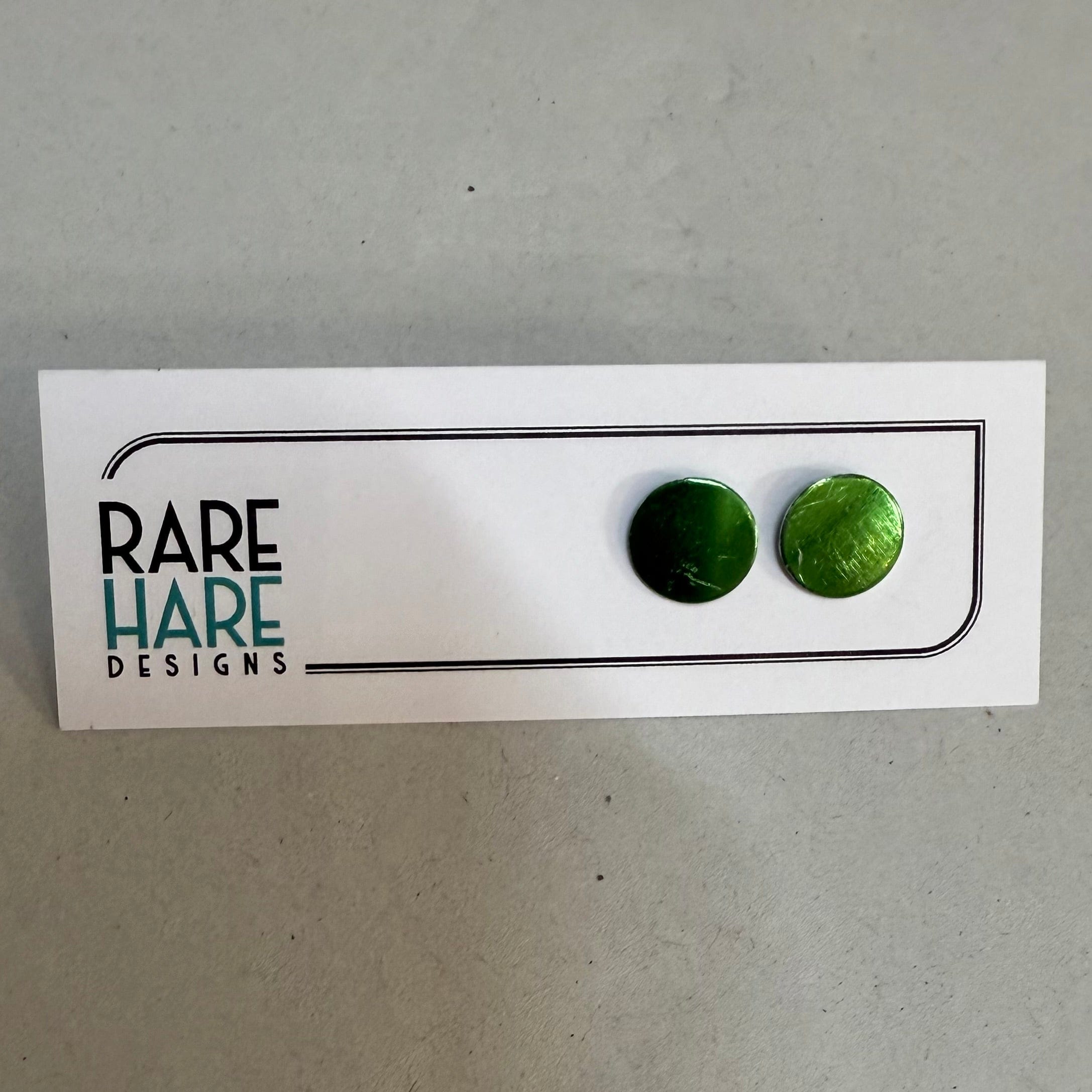 These earrings feature Upcycled laminate and flooring, handmade by Rare Hare Designs from the remaining material. Each circle is meticulously cut using a hand saw and attached to a surgical steel post with butterfly back.