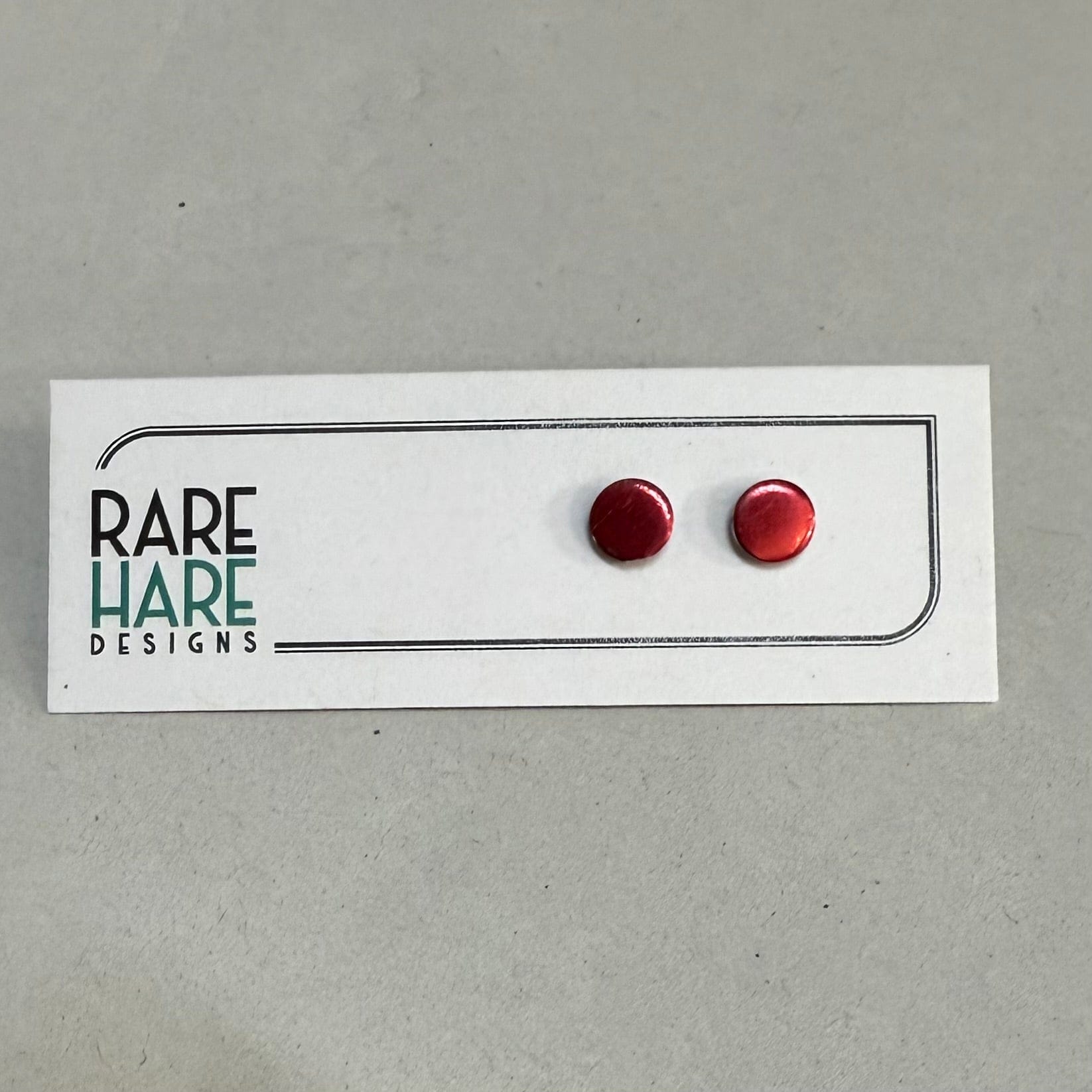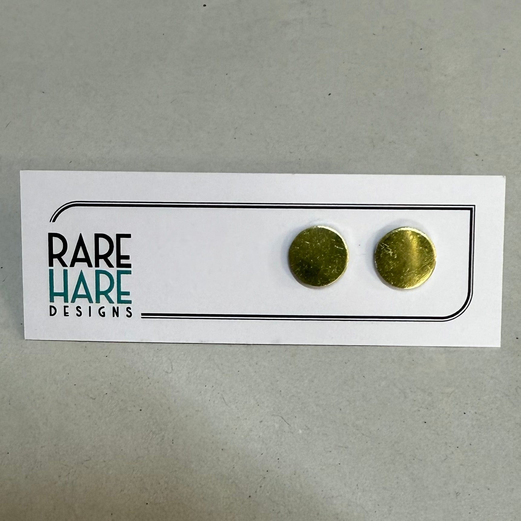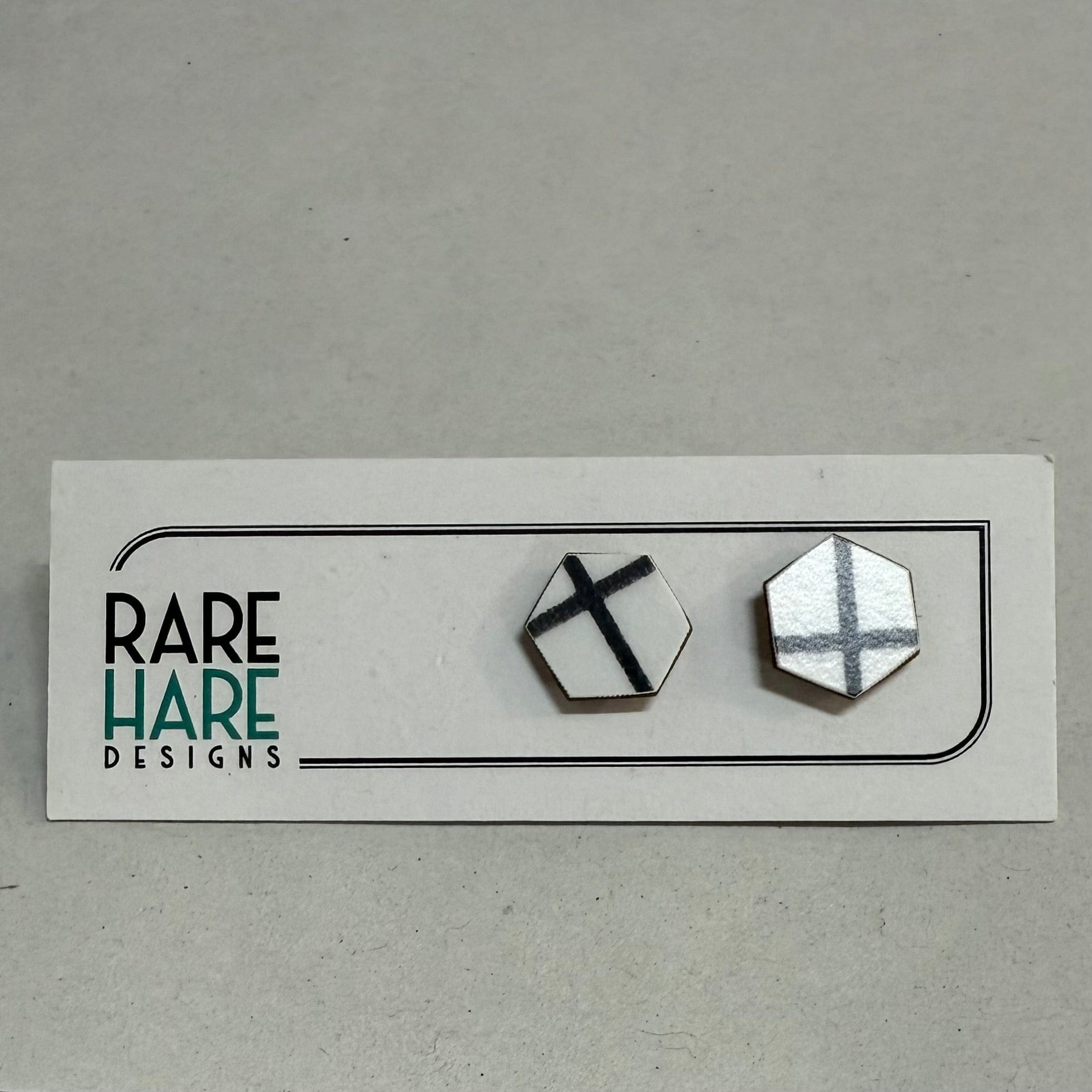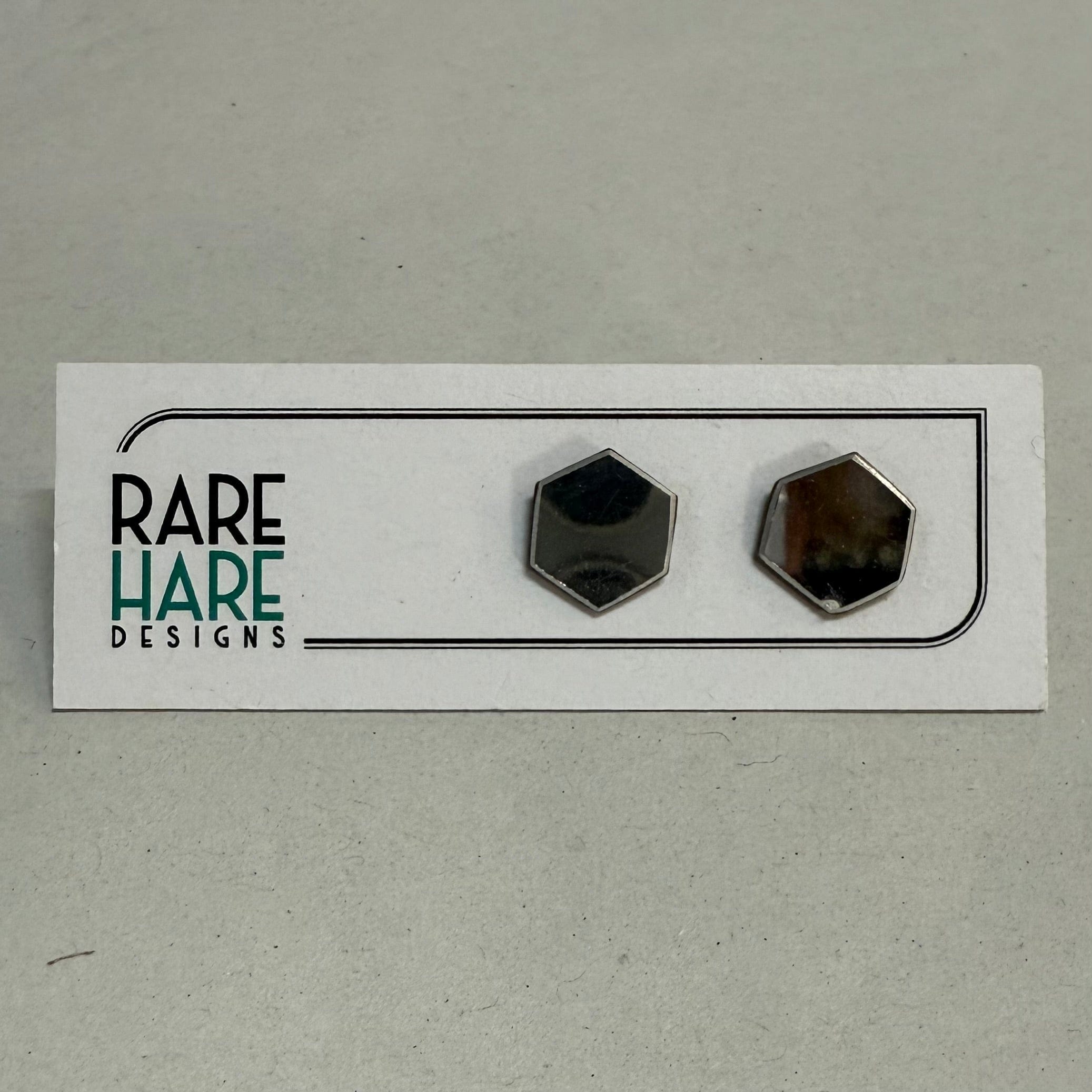These earrings feature Upcycled laminate and flooring, handmade by Rare Hare Designs from the remaining material. Each circle is meticulously cut using a hand saw and attached to a surgical steel post with butterfly back.