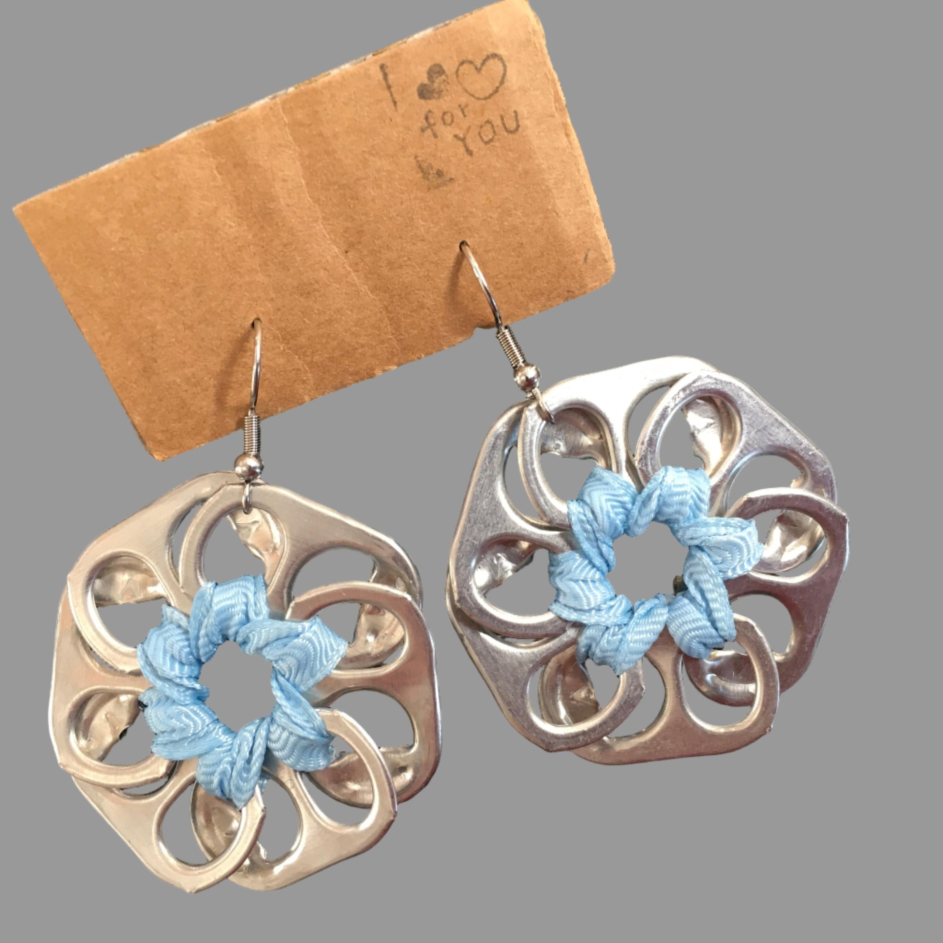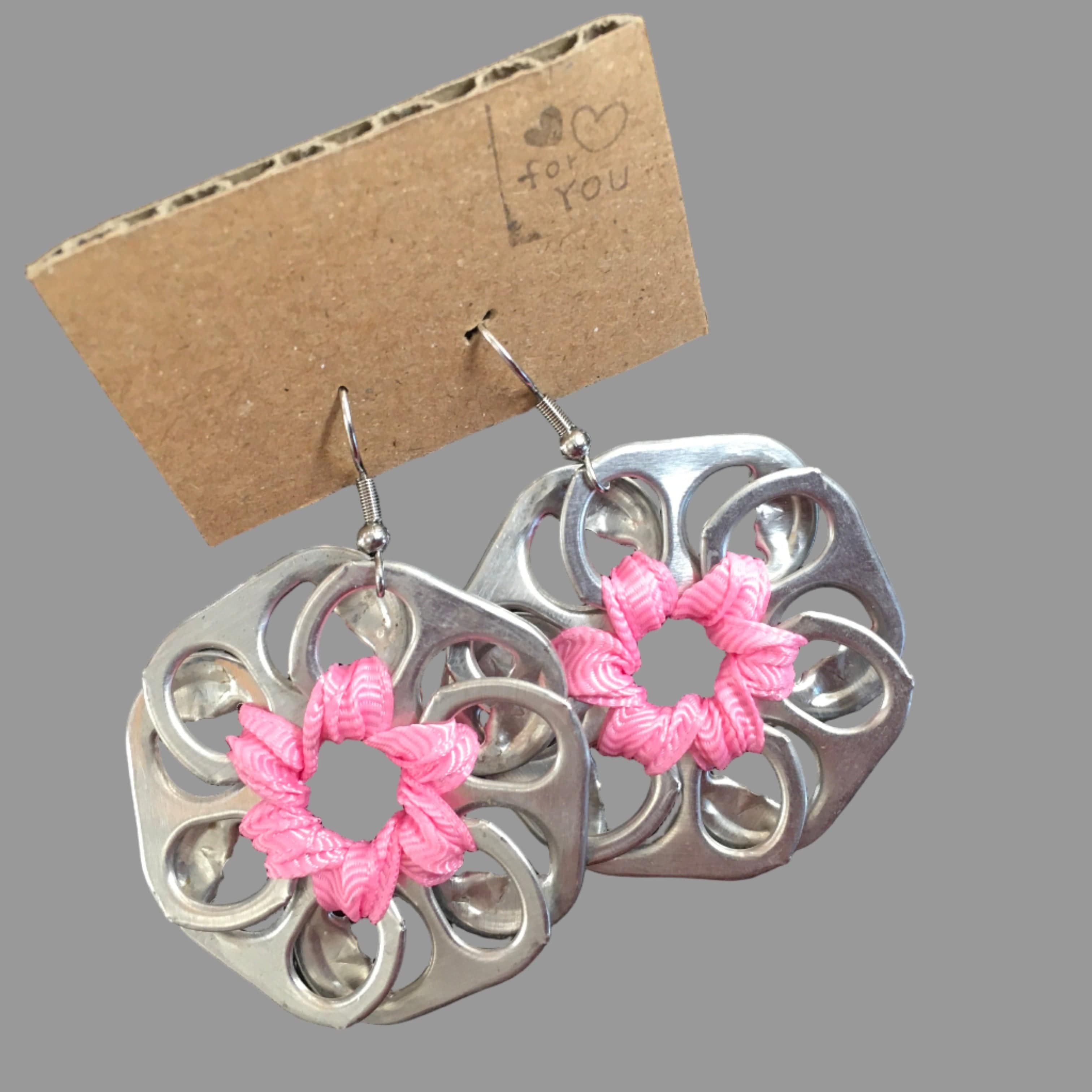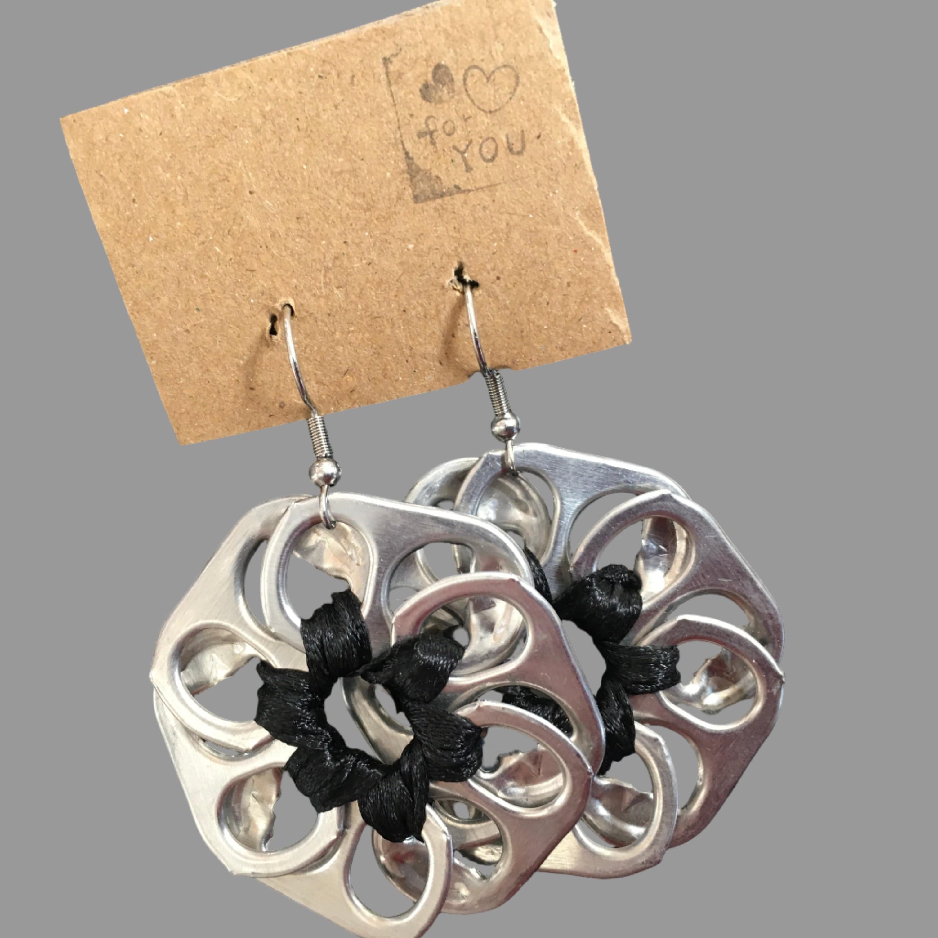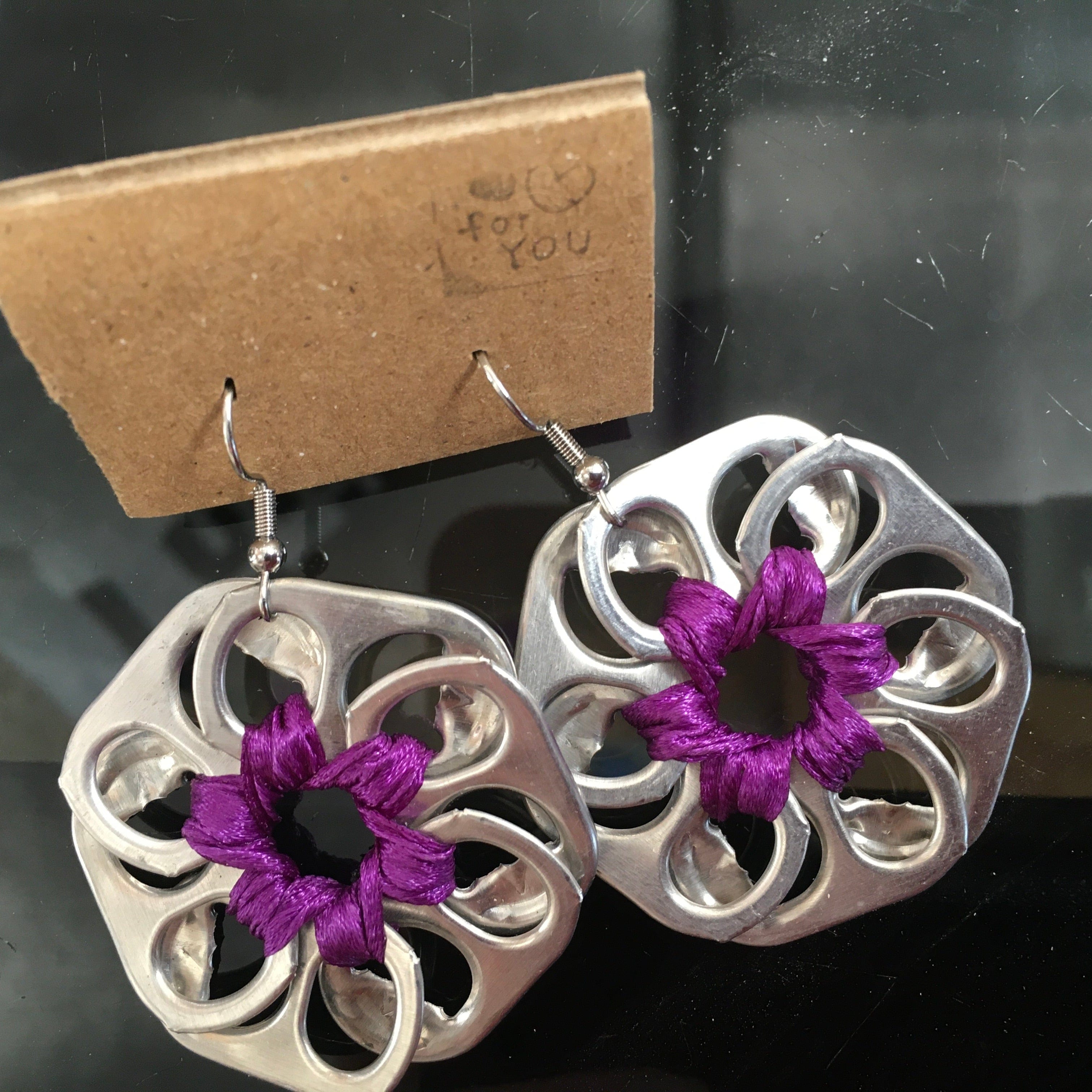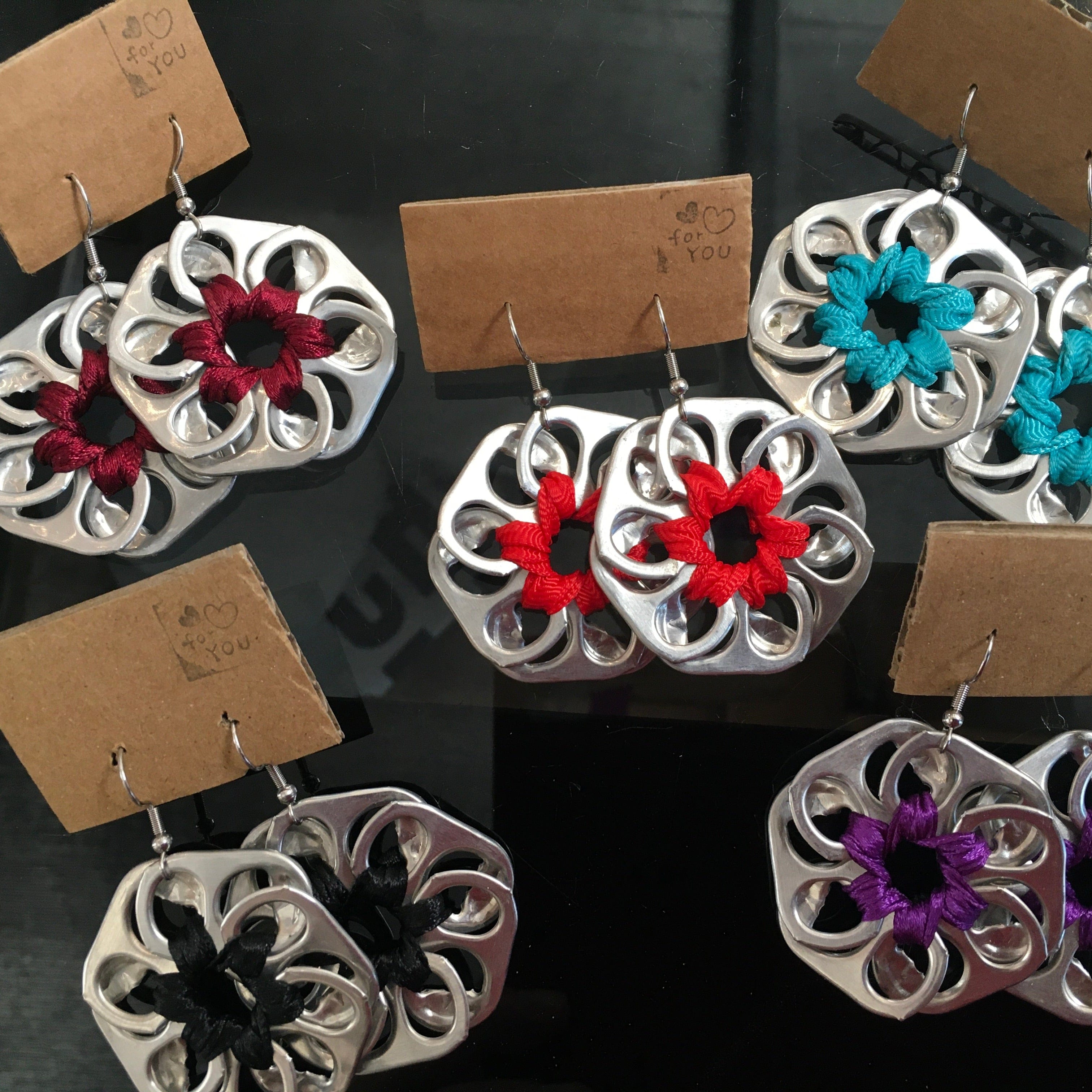 Handcrafted by an artistic family who once resided on a remote island in the Torres Strait for 6 years. During their time there, they honed their creativity by repurposing found objects. Today, this young family travels around Australia in their caravan, grateful for the chance to explore and design. These earrings, featuring colorful ring pulls, utilize new surgical steel hooks.